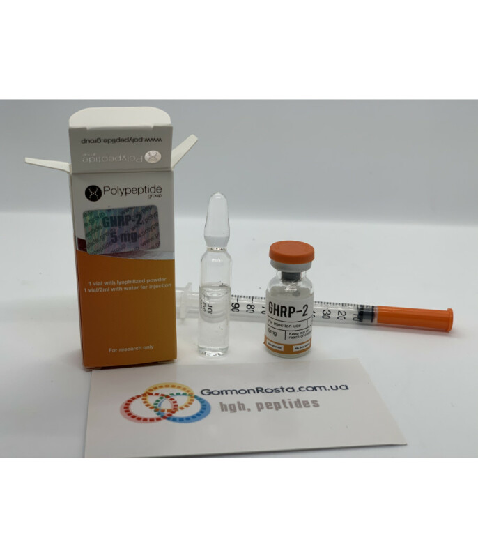 Данный препарат является бустером эндогенного соматотропина, стимулируя выработку главного анаболического гормона в организме человека. В этом разделе представлены шведские пептиды GHRP-2, купить оригинальный продукт по приемлемой цене можно у нас. Интернет-магазин GormonRosta специализируется на поставках качественной спортивной фармацевтики в Украину, страны СНГ и дальнего зарубежья.Характеристики пептида GHRP-2 5-mg – инъекционный препарат, который компания Polypeptide выпускает в виде сухого порошка, предназначенного для приготовления раствора на основе пептида и бактериостатической воды. В бодибилдинге стимулятор гормона роста применяют для набора массы, сушки и приглушения катаболизма, для снижения количества подкожных жировых отложений, укрепления костей, суставов и связок. Активные компоненты олигопептида GHRP-2 (шесть последовательно соединенных аминокислот) воздействуют непосредственно на гипофиз и гипоталамус, а если точнее – на G protein-coupled рецепторы, которые контролируют синтез соматотропина. Кроме набора мышечной массы препарат помогает быстрее пройти посттравматическую реабилитацию, укрепить иммунитет, защитить печень, улучшить состояние кожи и даже омолодить организм. Отдельно стоит отметить безопасность пептида GHRP-2: применение препарата не влечет за собой никаких побочных эффектов, так как после инъекции он быстро попадает в кровь, а оттуда – в головной мозг.Показания к применениюАтлеты ценят высокую эффективность и универсальность пептида GHRP-2, купить препарат можно для достижения разных целей:ликвидация природного дефицита гормона роста;ускоренный синтез соматотропина для набора массы и угнетения катаболизма;повышение аппетита вследствие воздействия на грелиновые рецепторы;борьба с лишним весом и сушка для получения рельефной мускулатуры;контроль количества холестерина в крови;укрепление опорно-двигательной системы;улучшение состояния кожи, противовоспалительный эффект и ускоренная регенерация повреждений эпидермиса;анаболическая поддержка для атлетов со слабой печенью.Эффективность пептида GHRP-2 настолько велика, что многие сравнивают стимулятор гормона роста с приемом инъекционного соматотропина в чистом виде.GHRP-2 дозировка и способ примиренияПри занятиях бодибилдингом рекомендуется доза GHRP-2 в 100-200 мкг (1-2 мкг на 1 кг массы тела), инъекции делают 2-3 раза в день – до еды, после силовых упражнений и перед сном. Дозировка свыше 200 мкг не приведет к значительному увеличению синтеза ГР, но может вызвать повышение концентрации в крови атлета пролактина и кортизола. Для приготовления раствора пептид аккуратно (не взбалтывая) смешивают с необходимым количеством воды для инъекций. В готовом виде продукт может храниться в холодильнике до 35 дней.В нашем магазине Вы можете купить GHRP 2 от производителя! Своим клиентам мы предлагаем пептиды и другие товары практически по себестоимости!Цены на все снижены, поэтому оригинальный GHRP 2 сегодня можно купить дешевле, чем вдругих аналогичных магазинах!Также советуем прочесть следующие статьи :Как принимать пептиды?Принципы разведения и расчет дозировок.Способы разведения пептидов.Как составить собственый курс пептидов.Правила пользования пептидами.Курсы пептидов.