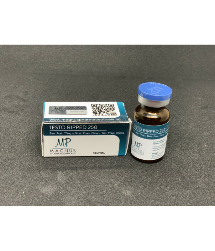 Купить Testo Ripped 250 10ml 250mg/1ml Magnus PharmaceuticalsTesto Ripped 250 представляет собой уникальный препарат. В его состав входят три эфира разных стероидных веществ. В результате сравнение Testo Ripped 250 с Сустаноном не совсем корректно, так как в этом анаболике содержаться только эфиры тестостерона. Тесто Риппед 250 состоит из следующих активных веществ:Тренболон Ацетат – 75 мг;Тестостерон Пропионат – 100 мг;Дростанолон Пропионат – 75 мг.Даже беглого взгляда на состав стероида достаточно для того, чтобы понять, в какой ситуации стоит купить Testo Ripped 250 – период сушки. Данный ААС содержит короткие эфиры стероидных веществ, обладающих высокой жиросжигающей активностью. Его применение позволит не только быстро избавиться от лишнего жира, но и набрать несколько кило качественной мышечной массы. НЕ удивительно, что все чаще бодибилдеры решают заказать Testo Ripped 250.Эффекты Testo Ripped 250Тесто Риппед 250 является мощным анаболиком и сильным андрогеном. Индекс анаболической активности данного препарата составляет 500% от тестостерона. Применение этого ААС позволит спортсменам получить следующие эффекты:увеличение мышечной массы без задержки жидкости;рост выносливости и силового потенциала;увеличение сексуального влечения;ускорение процессов липолиза;нормализация баланса липопротеиновых соединений;положительное воздействие на работу сердечного мускула.Именно этими положительными качествами препарата и объясняется его высокая популярность. При этом цена Testo Ripped 250 также выглядит привлекательно.Соло курс Testo Ripped 250Недельная дозировка препарата находится в диапазоне 250-450 мг. При этом опытные билдеры могут на этом временном отрезке использовать вплоть до 750 мг. Длительнсоть курса составляет 8-12 недель.Комбинирование препаратаТесто Риппед 250 сам по себе уже является комбинированным курсом. Однако профессиональные атлеты нередко совмещают его прием с Оксандролоном либо Винстролом. Заметим, что комбинированное использование любых стероидов можно рекомендовать только опытным билдерам. ПКТ после курса Testo Ripped 250После отмены препарата можно начинать проводить ПКТ уже через 3-4 дня. В течение 2-4 недель принимайте Кломифен цитрат ежедневно по 50 мг. Приобрести Тесто Риппед 250 в нашем магазине могут атлеты любого города Украины: Киева, Донецка, Львова, Луганска и т.д.