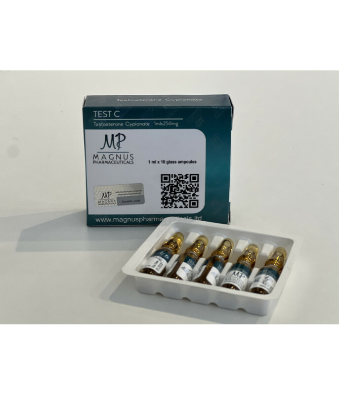 Купить Тестостерон Ципионат Test С 5 amp 250mg/1ml Magnus PharmaceuticalsTest С – популярный стероид, применяемый атлетами для увеличения силового потенциала и набора массы. В основе этого ААС лежит Тестостерон Ципионат. Это эфир пролонгированного действия, способный работать на протяжении порядка 15 суток с момента введения. Тестостерон Ципионат отличается высокой анаболической и андрогенной активностью. Мы рекомендуем купить Test С для проведения мощных массонаборных курсов.Эффекты Testosteron С MagnusПравильно составленный и проведенный курс с участием этого препарат позволяет атлетам рассчитывать на получение следующих результатов:набрать за один курс минимум 7 кило массы;значительно увеличить силовой потенциал;улучшить мотивацию и общий тонус;усилить сексуальное влечение;усилить аппетит;улучшить работоспособность суставно-связочного аппарата.Именно благодаря этим эффектам атлеты часто решают заказать Test С. Это весьма эффективный стероид, с помощью которого можно существенно улучшить спортивные результаты.Соло курс Testosteron С Magnus Так как препарат после введения способен работать длительное время, то в для обеспечения ровного гормонального фона достаточно делать 1-2 укола на протяжении семи суток. Длительнсоть курсов с участием Test С, цена которого невысока, составляет 203 месяца. Так как в основе данного стероида лежит эфир тестостерона, то на курсе ципика возможна сильная ароматизация. Чтобы избежать эстрогенных побочек, атлетам предстоит принимать ингибитор ароматазы. Чаще всего они выбирают Анастрозол.Комбинирование препаратаTest С может сочетаться с любыми ААС. Так как этот препарат лучше всего проявляет себя в период набора массы, то и оптимальными связками для него будут следующие препараты: Тренболон Энантат, Дека, Оксиметолон, Параболан, Метандиенон, Болденон. С их помощью можно набирать большое количество массы.ПКТ после курса Testosteron С MagnusВосстановительная терапия должна стартовать дней через 13-16 после последней инъекции ципика. В течение 3-5 недель атлетам необходимо использовать Кломифен Цитрат либо Тамоксифен. Суточная дозировка первого препарат составляет 100-50 мг, а второго – 20 мг. Приобрести спортивную фармакологию на выгодных условиях в нашем магазине могут атлеты, проживающие в любом городе Украины: Белой Церкви. Харькове, Киеве, Львове и т.д. Мы доставим ваш заказа на указанный адрес в максимально короткие сроки.