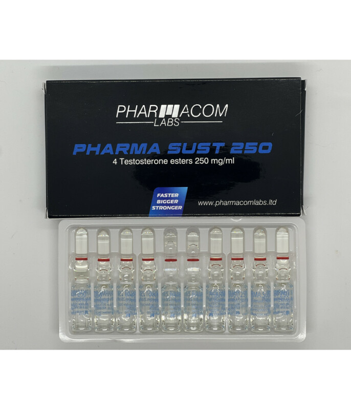 Купить сустанон Pharma Sust 250 в ампулах Pharmacom Labs (Фарма Суст 250 Фармаком Лабс)Фарма Суст 300 – композитный стероид от известного производителя. Данный препарат является аналогом известного всем билдерам Сустанона. В его состав входит 4 эфира синтетического мужского гормона. Они отличаются периодом полужизни, что позволяет им вступать в работу постепенно. В результате стероид начинает воздействовать на организм практически сразу после введения. При этом он работает на протяжении минимум 14 суток.Во многом именно по этой причине спортсмены решают заказать Pharma Sust 300. Однако не стоит забывать и об отличной результативности этого препарата. С его помощью атлеты могут набирать большое количество массы и увеличивать силу. Таким образом, мы рекомендуем купить сустанон для проведения массонаборных курсов.Pharma Sust 300 – сильный анаболик и андроген. На курсах этого ААС побочки чаще всего проявляются при не соблюдении правил применения стероида. Наиболее распространенными негативными эффектами являются эстрогенные. Устранить их можно с помощью ингибиторов ароматазы. Если препарат используется в течение от трех месяцев, то в состав курса следует ввести Гонадотропин. Что касается цены Testosterone MIX, то она выглядит привлекательно.Эффекты Pharma Sust 250 Pharmacomпозволяет набирать большое количество массы;резко увеличивается сила и работоспособность;замедляет процессы производства кортизола;смягчает боли в области суставов;усиливает аппетит.Соло курс Фарма Суст 250 Фармаком ЛабсНедельная дозировка анаболика составляет 250-750 мг. Так как препарат отличается большим периодом полужизни, в течение 7 дней достаточно сделать максимум 2 укола. Длительность курса чаще всего составляет 2-3 месяца. Для минимизации рисков развития побочек эстрогенного типа необходимо использовать ингибиторы ароматазы, например, Анастрозол.Комбинирование препаратаТестостерон Микс отлично сочетается с любыми стероидами. Однако из-за особенностей этого ААС его чаще всего применяют совместно с сильными массонаборными анаболиками: Оксиметолоном, Нандролон Деканоатом, Туринаболом, длинными Тренболонами и Болденоном.ПКТ после курса Фарма Суст 250Через 2,5-3 недели в обязательном порядке начинайте проводить ПКТ. В течение 3-4 недель вам предстоит употреблять Тамоксифен либо Кломифен Цитрат. В нашем магазине приобрести спортфарму могут жители всех городов Украины: Киева, Белой Церкви. Запорожья, Львова и т.д.