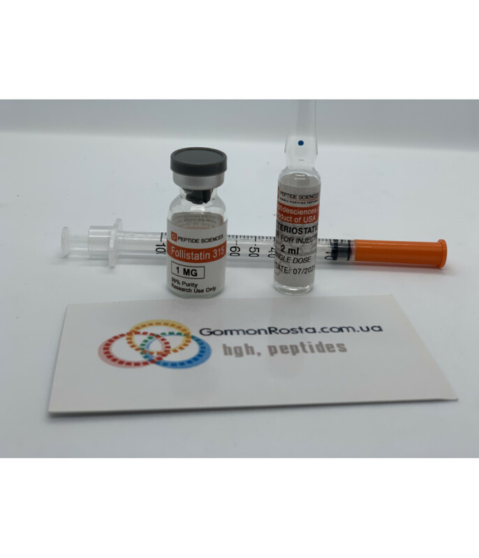 Пептид Follistatin 315 1 mg описаниеВ целом, пептид является молекулой, которая образовалась в результате соединения двух или нескольких аминокислот. Они присутствуют во всех клетках организма и обладают различными биохимическими показателями. Если же в молекуле менее пятидесяти аминокислот, это уже является пептидом, еще более крупные соединения именуются белками. Итак, пептиды – это более чувствительные белки и являются цепью аминокислот. Follistatin315 сортируется по ампулам по 1 mg: форма препарата – инъекции;упаковка – ампулы по 1 мг; класс препарата – «пептиды»; объем – 1 миллиграмм в одной ампуле; среднестатистическая дозировка – 100 мкг в сутки; ускорение наращивания массы тела; подходит для любых клиентов, особенно для спортсменов; побочных эффектов не наблюдается. Положительные характеристики follistatin 315 1 mg:скорое увеличение мышечной массы; повышение показателей мышечного тонуса; увеличивается работоспособность организма; возрастают силовые показатели на тренировках; улучшается режим сна; улучшается состояние связок и тканей организма, а также суставов. Вероятные негативные показатели препараты:признаки усталости после физических нагрузок;возрастет чувство голода; регенеративные процессы клеток и тканей. Почему интернет-маркет GormonRosta советует купить фолистатин 315 1 мг:данный препарат имеет высокую эффективность; курс приема – это десять дней употребления Follistatin 315 и перерыв на несколько дней, а затем снова принимается десять дней этот пептид; follistatin 315 1mg способен значительно ускорить процесс набора мышечной массы; препарат способствует сохранению в хорошем состоянии связок и тканей, сухожилий и суставов вашего тела; он необходим для регенерации и восстановления клеток и тканей;follistatin315 1 mg идеален для повышения спортивных показателей, но и актуален для употребления во время вынужденных перерывов тренировок для поддержания физической формы;время инъекции – утро или вечер, и дозу следует вводить за несколько раз.Как применять Follistatin 315 Наиболее нормальная суточная дозировка фолистатин315 1 мг – это 100 мкг. В каждой ампуле содержится 1 миллиграмм препарата.Как приготовить раствор? На 100 мкг используется один миллилитр воды и для инъекции берут шприц на десять единиц. Фолистатин 315 1мг регулирует выработку миостатина в организме. Благодаря этому ускоряются процессы наращивания мышечной массы и крепче становятся строительные материалы организма. В целом, миостатин – это белок, который регулирует процессы роста мышечной ткани. Препараты с миостанином используются в качестве анаболических веществ, которые активно воздействуют на мышечную ткань. Исследования свидетельствуют об отсутствии побочных эффектов во время применения препаратов с миостанином. Пептид Follistatin-315 изучают всесторонне. Исследуется его воздействие на регуляцию мышечной ткани, а именно увеличение мышечной массы и улучшение силовых показателей человека. Как работает Follistatin-315 1 mgПрепарат Follistatin-315 (1 mg) блокирует деятельность миостанина, вещества которое влияет на дифференциацию роста мышечной ткани, то есть обеспечивает ускорение или же замедление подобных процессов.Пептид Фоллистатин 315 (1 мг) очень эффективный препарат, активно использующийся в спортивной индустрии. Он производится на основе активносвязывающего белка, а также FST (белка), полученного из 