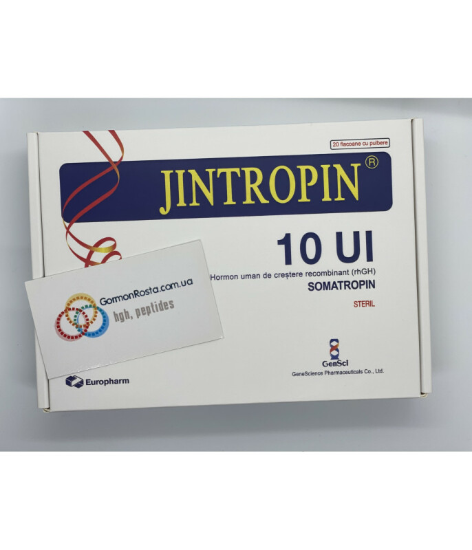Jintropin Europharm (Джинтропин Еврофарм) купить в Украине!Препарат Jintropin Europharm (Джинтропин Еврофарм) – это рекомбинантный человеческий гормон роста (соматропин), выпускаемый в виде порошка для инъекций. Он благотворно воздействует на организм человека, а потому нашел широкое применение не только в медицине, но и в спорте, особенно среди бодибилдеров. Купить Jintropin Europharm (Джинтропин Еврофарм) в дозировке 20 фл х 10 ME по отличной цене можно в нашем интернет-магазине. Реализуем только оригинальные препараты, обладающие высоким качеством и эффективностью.Спектр действий препарата Jintropin EuropharmПри приеме гормона роста Jintropin Europharm (Джинтропин Еврофарм) наблюдаются такие эффекты: Стимуляция роста мышечной и костной ткани. Джинтропин способствует активации синтеза белка в мышцах, а также стимулирует появление новых мышечных клеток, что ведет к повышению выносливости и силы. Замедление липогенеза и ускорение сжигания жира. Прием этого препарата позволяет ускорить метаболизм. В комплексе с другими жиросжигающими средствами и диетическим питанием наблюдается синергетический эффект. Улучшение состояния суставов и связок. Это происходит за счет способности Jintropin усиливать синтез коллагена. Особенно рекомендуется препарат при длительных силовых нагрузках, а также в период реабилитации после травм. Активизация регенеративных способностей организма. Многие спортсмены отмечали улучшение состояния ногтей, волос и кожи, а также укрепление иммунитета. Улучшение памяти. Гормон роста Джинтропин улучшает работу головного мозга и повышает интеллектуальные способности.Советы по применениюJintropin Europharm (Джинтропин Еврофарм) вводится в организм при помощи подкожных инъекций (как правило, при помощи инсулинового шприца). Место введения – любое, но чаще это область живота.Что касается дозировки, ее определяет только врач или тренер. Для достижения минимального анаболического эффекта начальная суточная доза не должна превышать 5 МЕ (половину флакона), в дальнейшем она может быть увеличена. Рекомендуется разделять дозу на два приема: утренний и вечерний. Продолжительность курса составляет от 3 до 6 месяцев.Как оформить заказЧтобы приобрести гормон роста Jintropin Europharm (Джинтропин Еврофарм) на нашем сайте, просто добавьте товар в «Корзину» и укажите свои контактные данные. Пересылка продукции оперативно осуществляется по всей территории Украины. Подробная информация о способах оплаты и доставки указана в отдельном разделе сайта.Также советуем прочесть следующие статьи :Как использовать гормон роста, пояснение "на пальцах"Инсулин - раскладываем по полочкам.Гормон роста для лечения суставов, связок и межпозвоночных грыж.Применение гормона роста в косметологии и медицине.Гормон роста, инсулин, Т4 и Т3