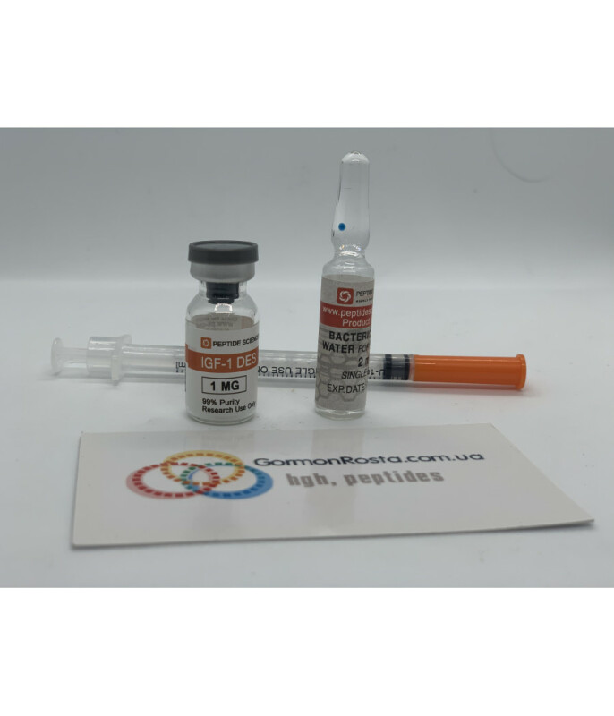 Пептид DES(1-3) IGF-1 (1mg) PeptideSciencesДанный пептид – это модифицированная форма препарата ИРФ-1, которая имеет период полураспада около 20 мин, благодаря чему атлеты ставят его локально в отстающие группы мышц, чтобы дать толчок для гиппертрофии!Мощность нового продукта сильнее в десять раз. Гормоны вырабатываются организмом самостоятельно, но со временем работоспособность организма падает и приходится употреблять дополнительные вещества для улучшения состояния здоровья. Пептид DES(1-3) IGF-1 (1mg) способствует росту тела, так как активизируются процессы секреции ДНК.В целом, данный препарат уникален и является достижением нового поколения разработок, поэтому и стоимость его достаточно высокая. Наиболее популярен данный товар среди профессиональных спортсменов и любителей, которые желают набрать мышечную массу. Купить DES(1-3) IGF-1 (1mg) Поскольку данный препарат востребован среди спортсменов, прием его нужно совмещать с диетой и тренировками, составляя правильно расписание. Среди всех аналогов и пробных продуктов, пептиды данного производителя – самое мощное и эффективное средство. Пептид дес(1-3) игф-1 (1mg) способствует дифференциации клеток организма. Кроме того он ускоряет обмен полезных веществ и поступление их в клетки. Также наблюдается анаболический эффект от воздействия DES(1-3) IGF-1. Действие данного препарата способствует возникновению новой мышечной ткани непосредственно во время тренировок. И это еще не исчерпывающий перечень качеств и свойств пептида дес(1-3) ирф-1. Среди достоинств есть такие показатели: рост и развитие мышечной массы;сжигается излишний подкожный жир;происходит сушка и тело приобретает потрясающий рельеф;улучшается структура клеток костной ткани;обновляется нервная система;улучается состояние иммунитета организма и т.д.Всех этих эффектов возможно достичь, принимая данный препарат. Но для этого следует правильно его употреблять и рассчитать точную дозировку, подходящую конкретно для вас. Купить дес(1-3) игф-1 1 мг можно у нас в интернете-магазине, но перед этим вам необходимо сделать такие операции: сходить на консультацию к профильному специалисту;составить курс приема препарата;соблюдать правила употребления;вводить инъекционно необходимую дозировку, но не более;препарат принимать женщины должны осторожно, так как исследований влияния DES(1-3) IGF-1 на женский организм мало. Самая низкая цена на PeptideSciences DES(1-3) IGF-1 (1mg) в Украине! Купить данный препарат можно в нашей компании и принимать его на протяжении всего курса. Но также вы можете приобрести другие препараты и грамотно их сочетать с данным пептидом. Если вы намерены принимать только DES(1-3) IGF-1, его дозировка составляет 100 мкг за сутки два-три раза в неделю. И дни ввода пептида должны совпадать с вашими тренировками. Еще один вариант – два приема препарата в промежутке десяти-двенадцати часов. Длительность курса приема препарата назначается для каждого человека индивидуально, но в среднем его употребляют от четырех до двенадцати недель. После приема необходимо делать перерыв недель на пять.Кроме того, можно комбинировать DES(1-3) IGF-1 (1mg) с иными препаратами. К примеру, с PEG-MGF. Это сочетание поможет стимулировать гиперплазию. И в таком случае необходимо пептиды употреблять от семи до тридцати дней. Позвонив в нашу компанию, вы можете получить квалифицированную консуль