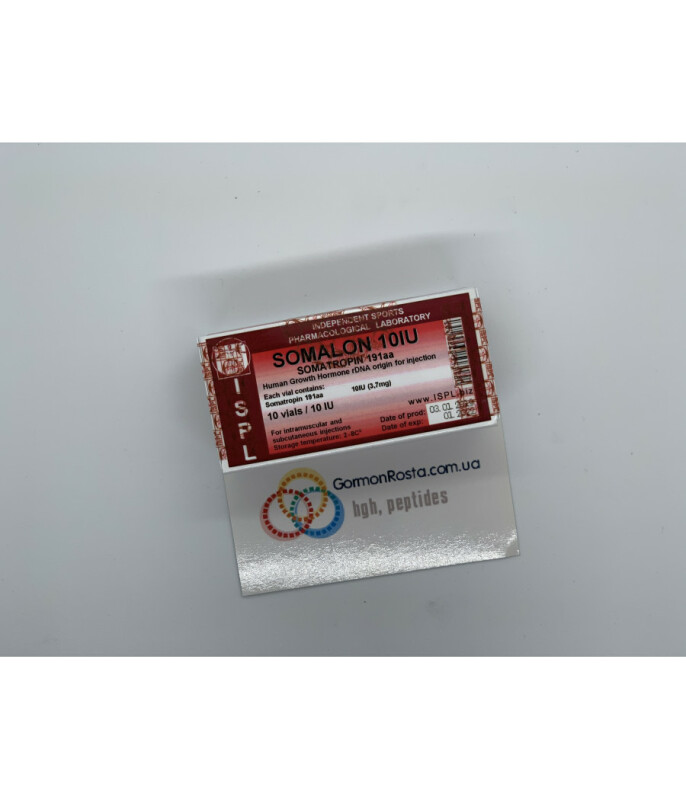 Купить Сомалон10 в УкраинеГормон роста Somalon 10 - это абсолютно качественный гормон роста, который производится известной румынской компанией ISPL и имеет схожие характеристики с человеческим гормоном роста. Препарат выполняет различные вспомогательные функции, которые также позволяют значительно улучшить здоровье человека в целом. Препарат Сомалон 10 имеет вид порошкообразной белой пудры и производится в ампулах закрытого типа. Каждая упаковка содержит по 10 стерильных флаконов, каждый из которых содержит по 3,3 мг соматотропина, соответствуя 10 Ед. Гормон роста ISPL описаниеISPL (Сомалон 10) 100 ME имеет продуктивные характеристики и результативно: Снижает лишние жировые отложения;Способствует к значительному уплотнению тканей хрящей и костей;Улучшает общее состояние иммунитета;Снижает возможность возникновения заболеваний сердца и сосудов;Заметно улучшается состояний кожи.Somalon 10 гормон роста как приниматьДля правильной подготовки к началу процедур нужно добавить в упаковку и растворить 1 мл воды для уколов. Затем мягкими круговыми движениями мешать содержимое пузырька до того момента, как порошок полностью раствориться. Оптимальная дозировка приема гормона роста фирмы ISPL: Результативность от лечения препаратом растет вместе с ежедневным увеличением порции лекарства. Для взрослого человека, который проходит курс лечения препаратом Соматропин ISPL первый раз, рекомендуемой будет доза 5ЕД в день, которую следует поделить на два введения по 2,5ЕД с утра и перед сном. Как долго стоит принимать hgh препарат ISPL: Длительность применения гормона роста (соматропина), согласно рекомендациям специалистов, должна составлять не менее двух-трех месяцев для получения долговременного результата. Сомалон 10 (Сомалон 10) компании ISPL теперь можно купить по наиболее демократической цене именно на страницах нашего сайта!Также советуем прочесть следующие статьи :Как использовать гормон роста, пояснение "на пальцах"Инсулин - раскладываем по полочкам.Гормон роста для лечения суставов, связок и межпозвоночных грыж.Применение гормона роста в косметологии и медицине.Гормон роста, инсулин, Т4 и Т3